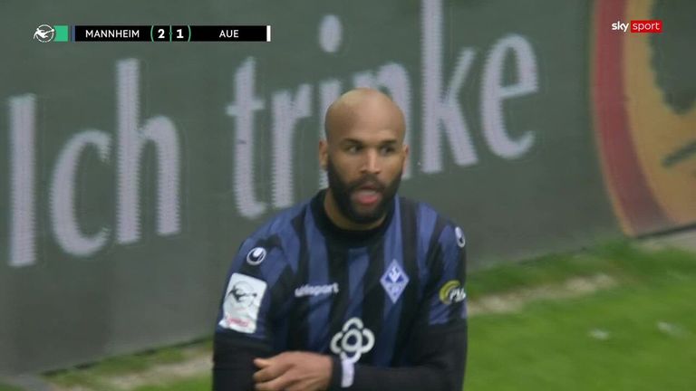 In der Nachspielzeit flog ein langer Ball nach vorne auf Terrence Boyd. Der Mannheimer Stürmer drang mit seiner Ballan- und -mitnahme von halbrechts in den Aue-Strafraum ein und zog satt per Halbvolley ab. Die Kugel klatschte an die Unterkante der Latte, von dort aus hinter der Linie auf den Boden (90.+1 Minute). So zumindest haben es Schiedsrichter Timon Schulz und seine Assistenten gesehen und gewertet.